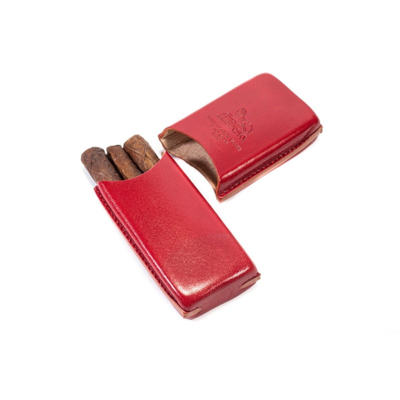 Lubinski Cigar Holder model "Quadro" for mezzanine Tuscan in leather, Color: Red, 3 pieces.
