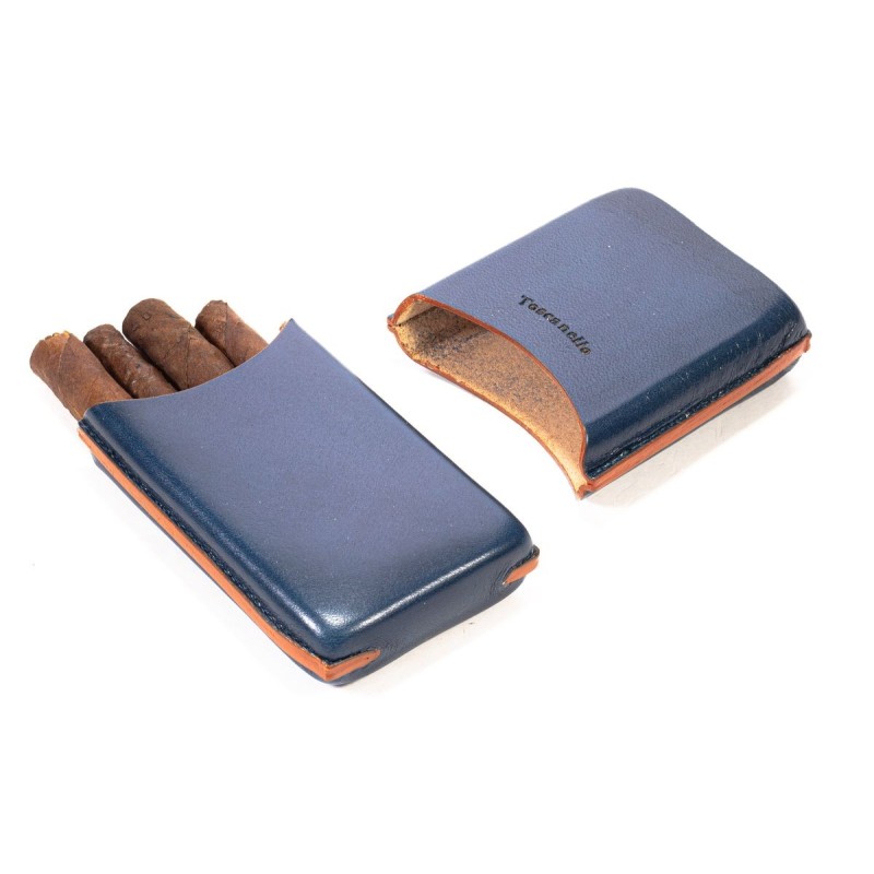 Lubinski Cigar Holder for mezzanine Tuscan in leather, Color: Blue, 4 pieces.