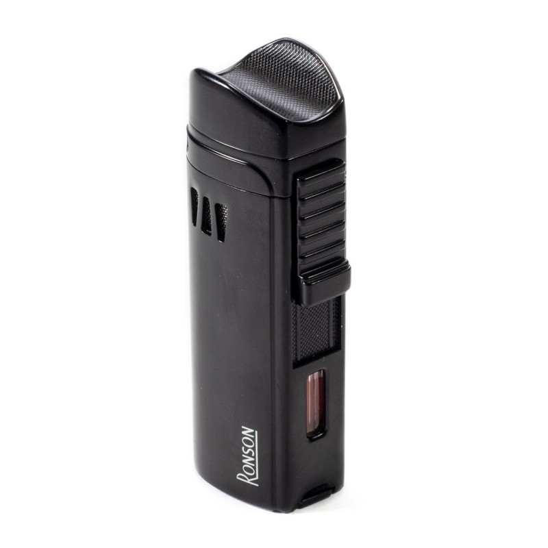 Ronson Mistral Lighter, Triple Flame, Color: Black, with Cigar Punch, Cigar Holder Cap Lighter and Cigar Punch at the base of the lighter, original box with warranty certificate.