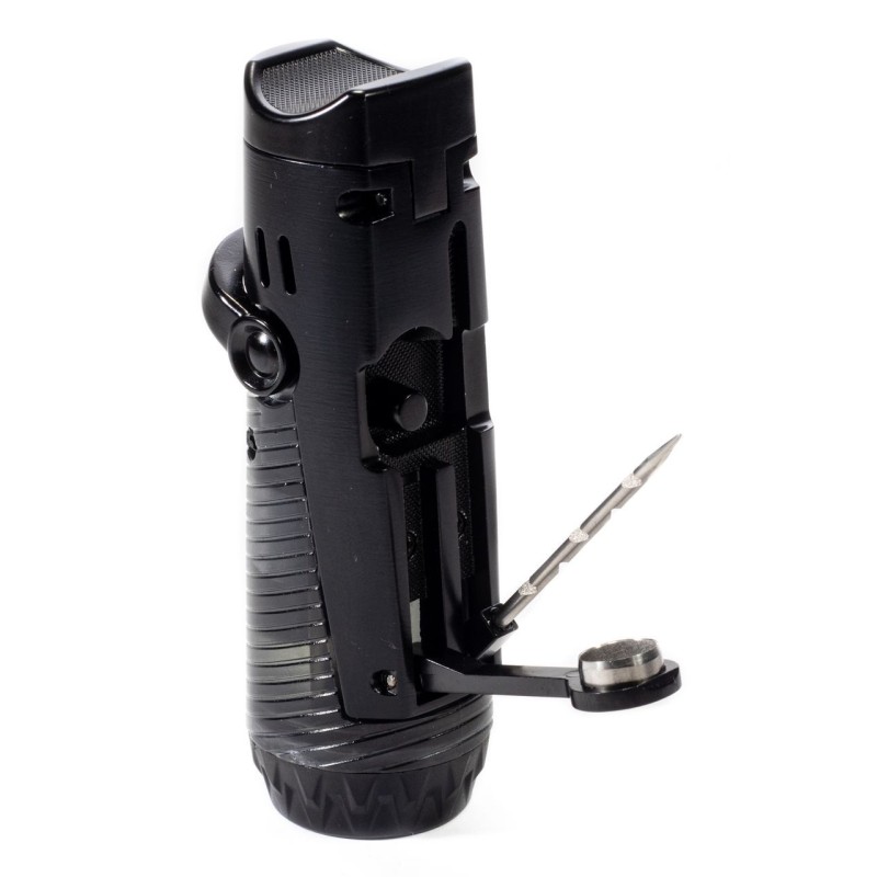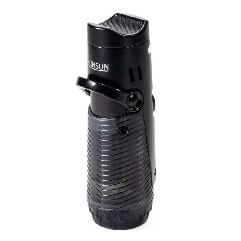 Ronson Bora Jet Flame Lighter, Triple Flame, Color: Gun Metal & Black, Cigar Holder Cap Lighter, needle and Cigar Punch on side of the lighter, original box with warranty certificate.
