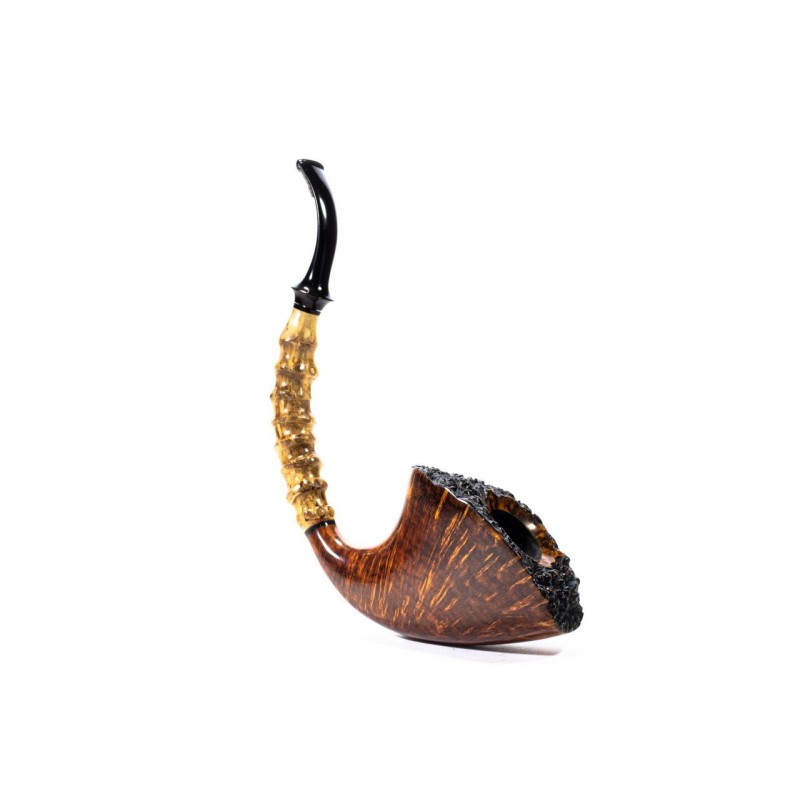 C-Pipe Group 16 Smooth, Handmade, Color: Brown, Rusticated Rim, True in Boxwood, saddle stem, without filter, Made in Cina.