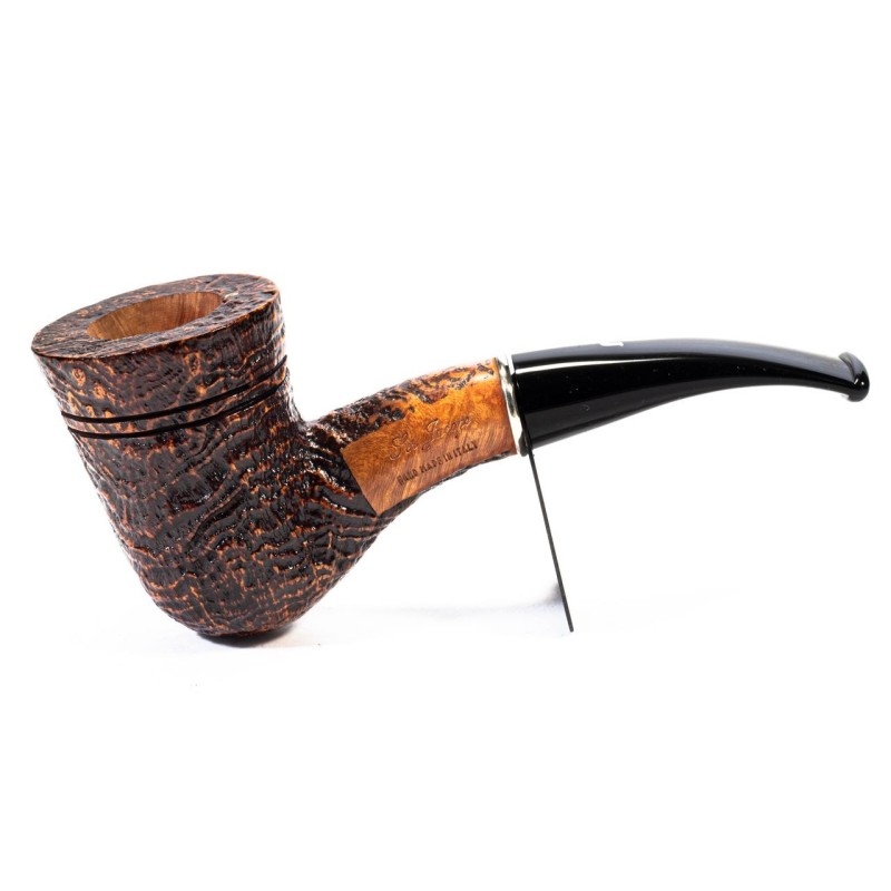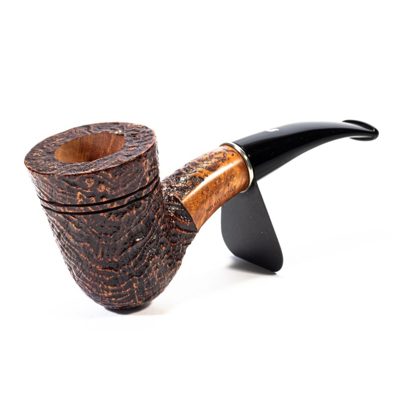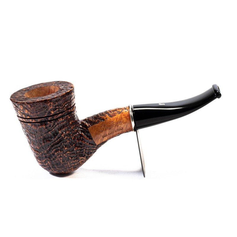 Ser Jacopo Sandblasted S2 Foeda 1, Group C, Color: Brown, True in Silver, the stem can be used upside down changing aesthetics vision of the pipe, without filter, bag and original box, Made in Italy.