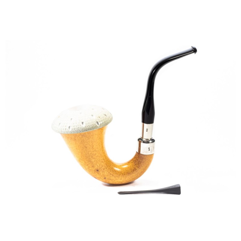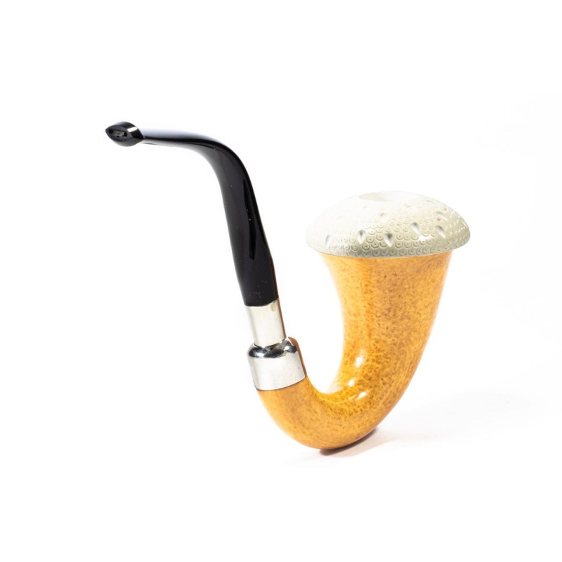 CPW Calabash Smooth Natural, Color: Light Brown, Meerschaum Rusticated Cap, double True in Silver, without filter, tailored hard case in red leather, Made in Turkey.