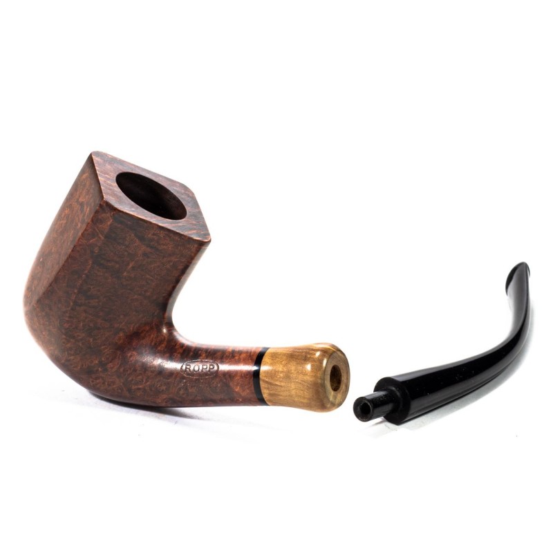 Ropp Bon Goût Smooth, Model 10115, Color: Brown, Paneled, Insert on stem in Olivewood, saddle stem, without filter, original bag, Made in France.