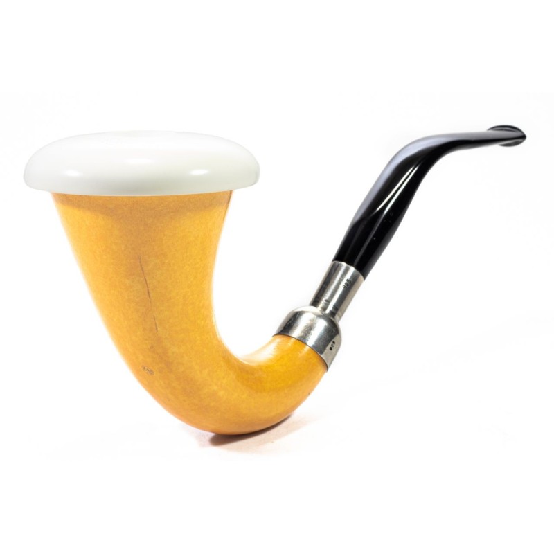 CPW Calabash Smooth Natural, Color: Light Brown, Meerschaum Smooth Cap, Floreal engraving on Cap, double True in Silver, without filter, tailored hard case in red leather, Made in Turkey.