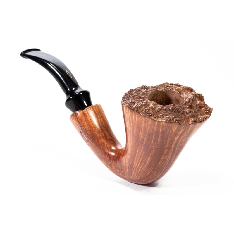 Brebbia Collection Pura Natural LP Smooth, Model 16C, 2 Stars, Rusticated Rim, saddle stem, filter 9mm with adapter, bag and original box, Made in Italy.