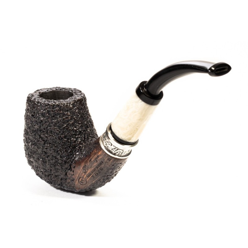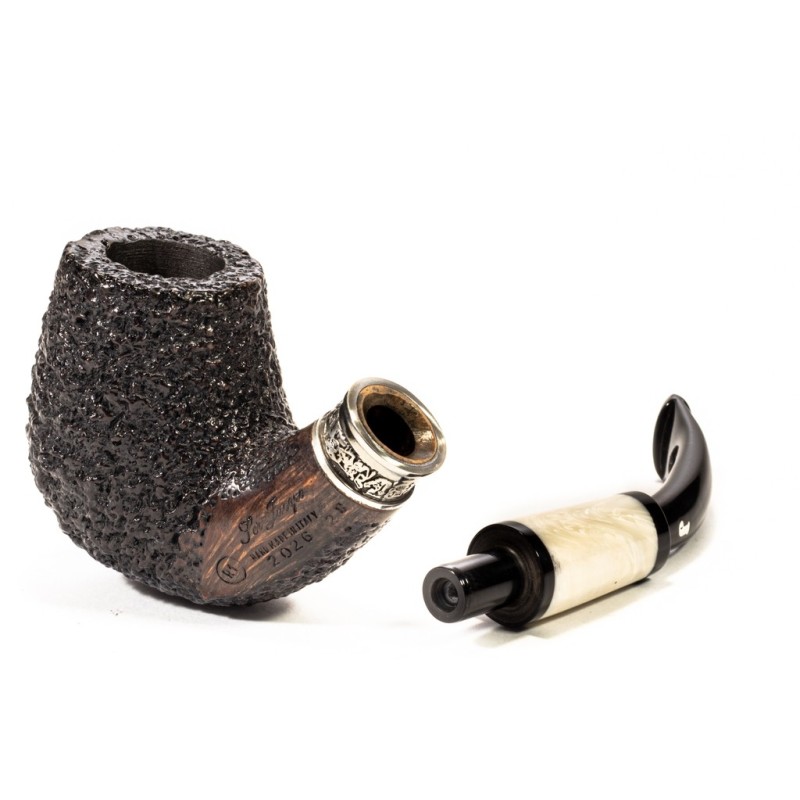 Ser Jacopo Historica 2026 Picta Picasso 11 Rusticated R1, Pipe N°28, Color: Black, Elaborated True in Silver with "Ser Jacopo" Engraving, insert on stem in Galalith, saddle stem, without filter, bag and original box. Made in Italy.