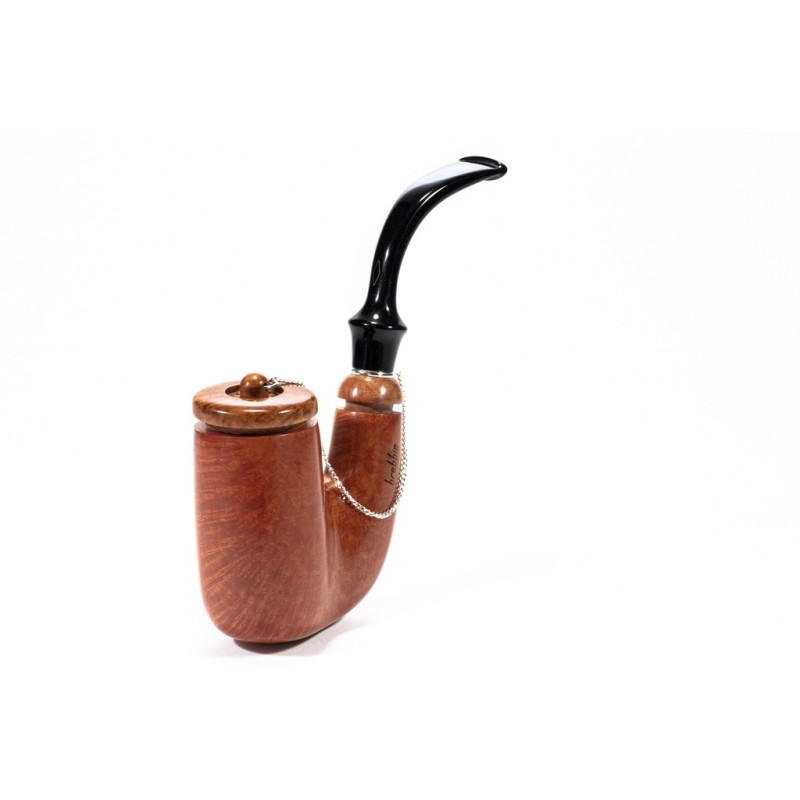 Brebbia Oom Paul Ambra Smooth, silver chain, Cap and true in Briar, saddle stem, filter 9mm with adapter, bag and original box, Made in Italy.