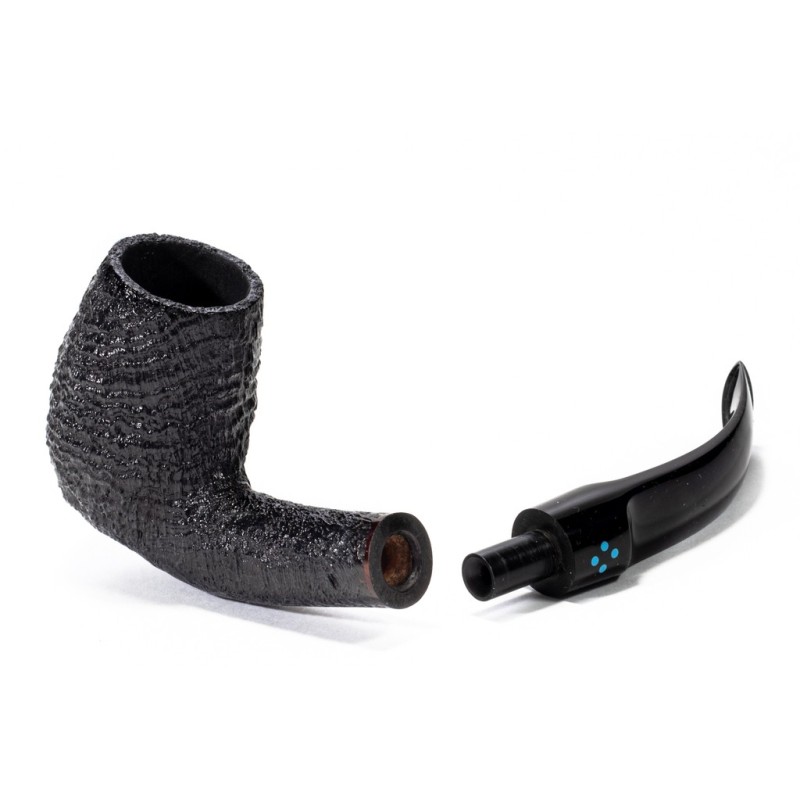 Sasieni 4 Dot Ruff Root Dark Sandblasted, Color: Black, saddle stem, Sasieni Pipe Bag included, without filter, bag and original box.