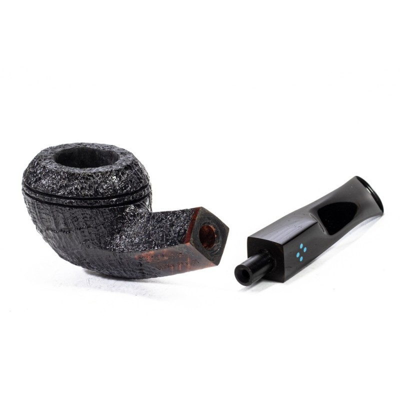 Sasieni 4 Dot Ruff Root Dark Sandblasted, Color: Black, saddle stem, Sasieni Pipe Bag included, without filter, bag and original box.