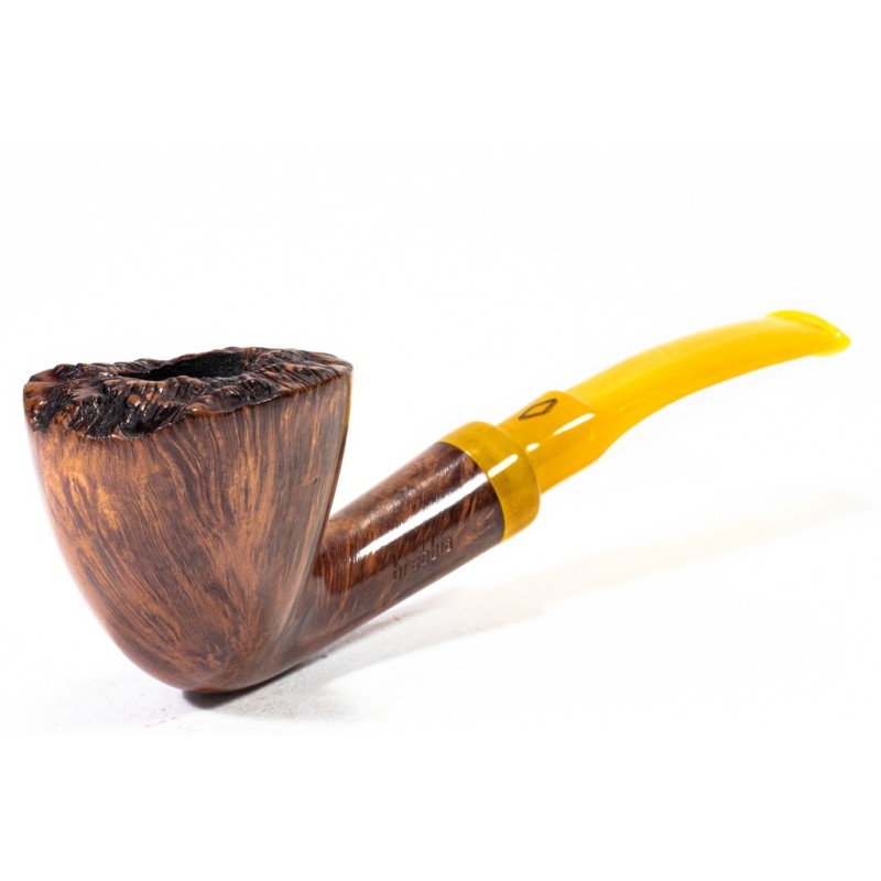 Brebbia Collection Pura LP Smooth, Model 16C, Rusticated Rim, saddle stem, filter 9mm with adapter, bag and original box, Made in Italy.