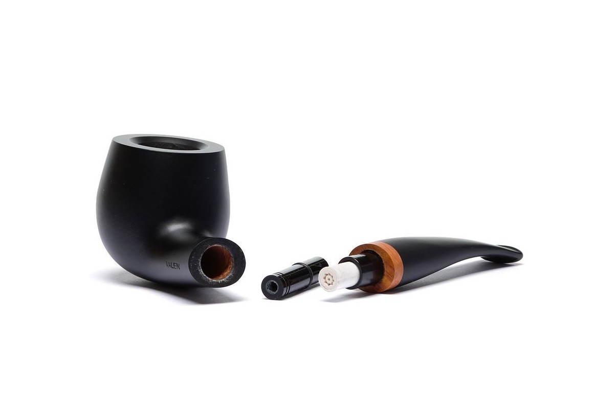 Vauen Olaf Smooth Opaque, Model 1840, Color: Black, with insert in briar on the stem, filter 9mm with adapter, bag and original box with warranty certificate, Made in Germany.