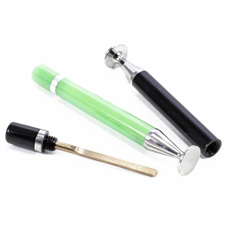 Pipe Tamper for press tobacco in Acrylic and Aluminium with scoop/tip and circular base, Color: Green.