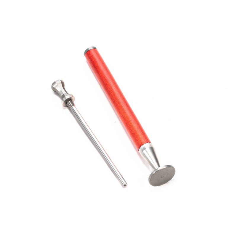 Pipe Tamper for press tobacco in Ergal Aeronautical Aluminium and Wood with scoop/tip and circular base, Color: Red.