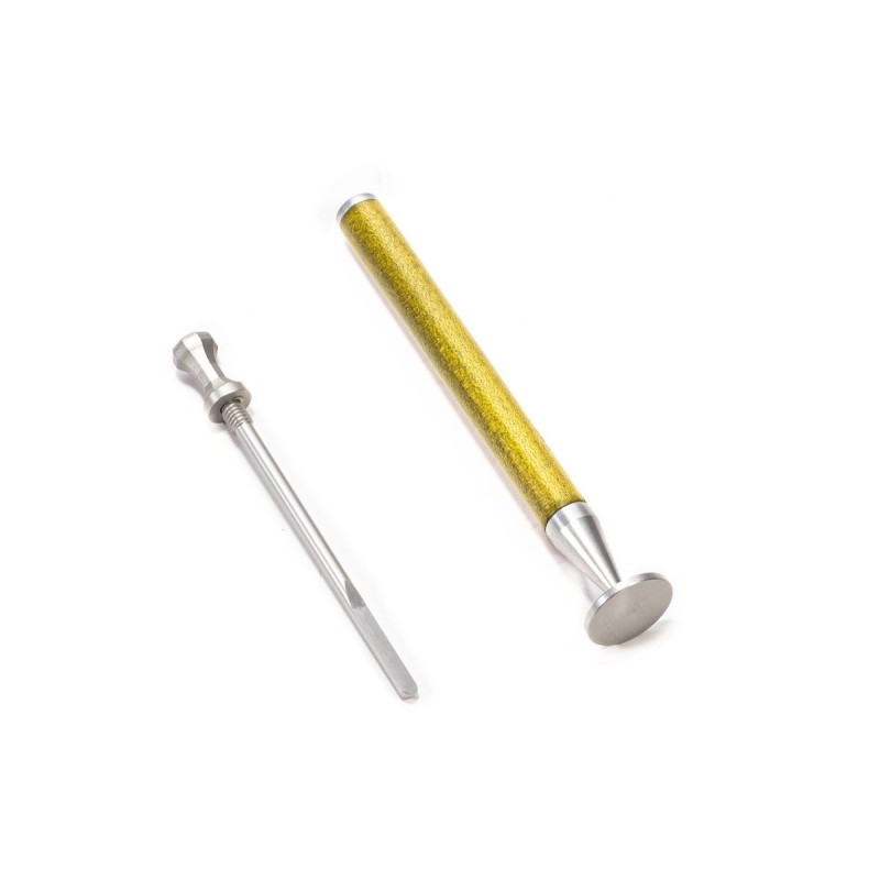 Pipe Tamper for press tobacco in Ergal Aeronautical Aluminium and Wood with scoop/tip and circular base, Color: Green.
