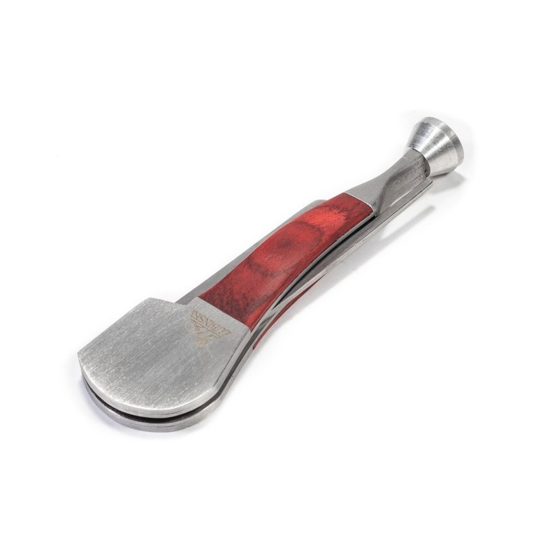 Pipe Tamper for press tobacco with Shank Reamer and scoop/tip, Material: Stainless Steel and Multilayer Wood, Color: Red.