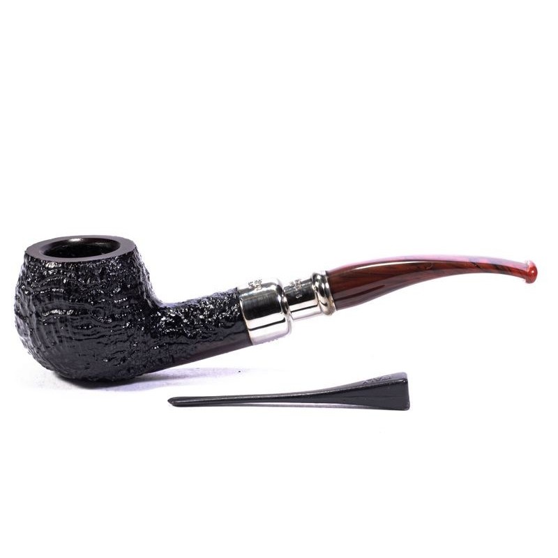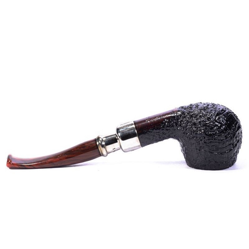 Peterson Newgrange Spigot Sandblasted, Model 406, Color: Black, Smooth Rim, Punching Peterson of Dublin on double True in Silver, grafting to flock, without filter, bag and original box