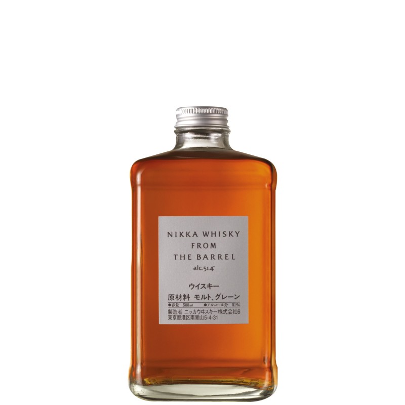 Nikka From The Barrel is a whiskey that has redefined the category: for this whiskey, Nikka's chief blender assembles distillates from the two historic distilleries of Yoichi and Miyagikyo, including a portion of whiskey distilled in the coffee column alembic. Ex-bourbon and ex-sherry casks of various sizes and passages are used for aging. It's a whiskey that dazzles with finesse and complexity. The name alludes to the bottle's high alcohol content, which is 51.4%. This blend contains approximately 100 different Nikka whiskeys.