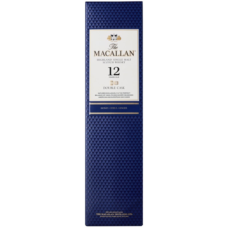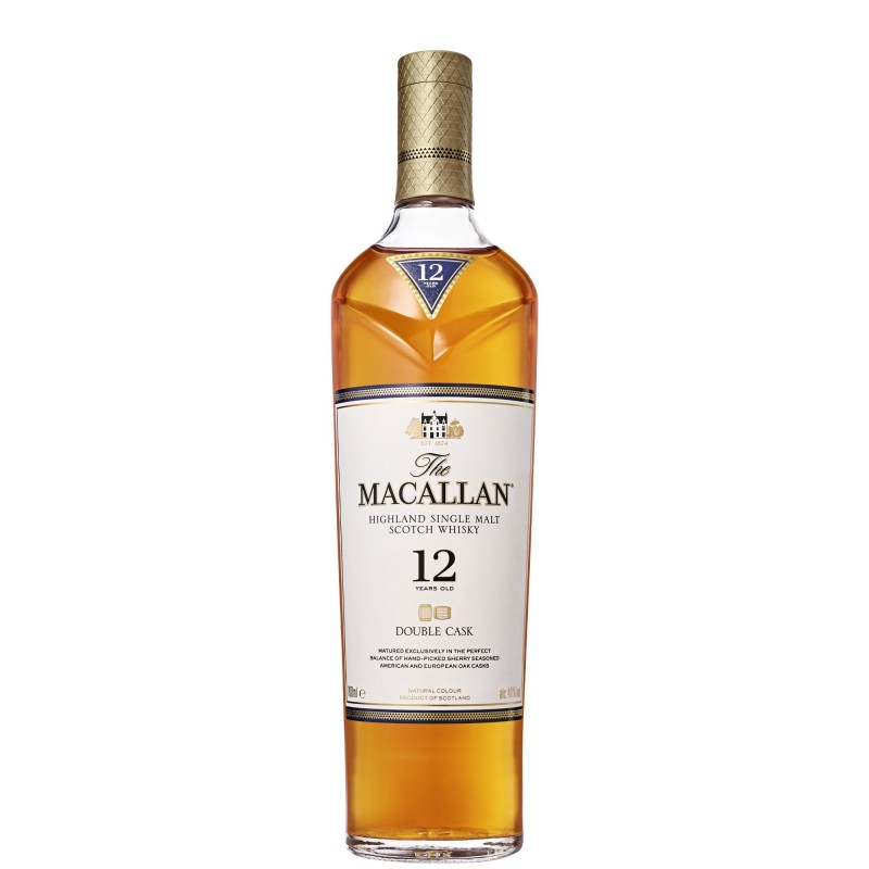 The Double Cask series of Macallan whiskey is aged in American and European oak barrels topped with sherry wine. Consumers have welcomed The Macallan's coming-of-age statement. This 12 Y.O. is fresh, citrusy and sweetly malty.