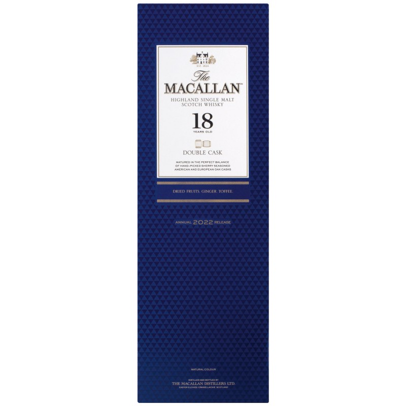 Double Cask is a whisky matured in ex-sherry casks of American and European oak. The vanilla, citrus and caramel aromas of American oak and the unmistakable smoothness of European oak combine to make this 18-year-old a long and complex whiskey.