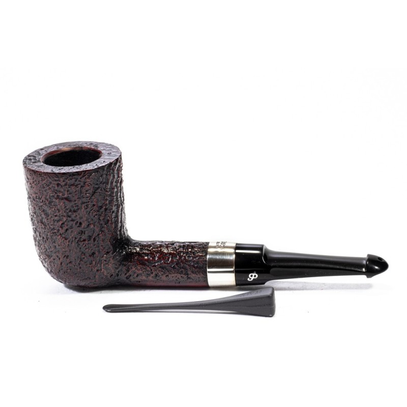 Peterson Pub Pipe Sandblasted, Color: Brown, True in Silver, saddle stem, P/lip, without filter, bag and original box, Made in Ireland.