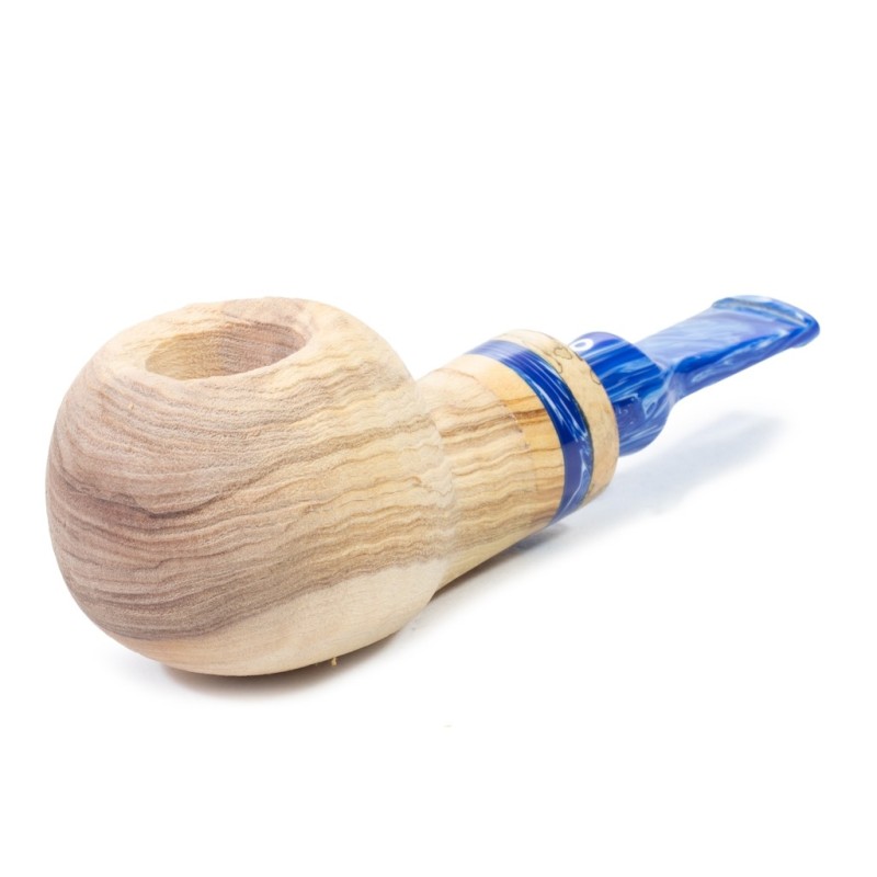 Talamona Oliver Sandblasted Pipeonline Edition, Pipe N° 9 of 15, Color: Light Brown, True in Olive and Acrylic, saddle stem, without filter, bag and original box, Made in Italy.