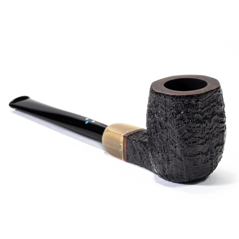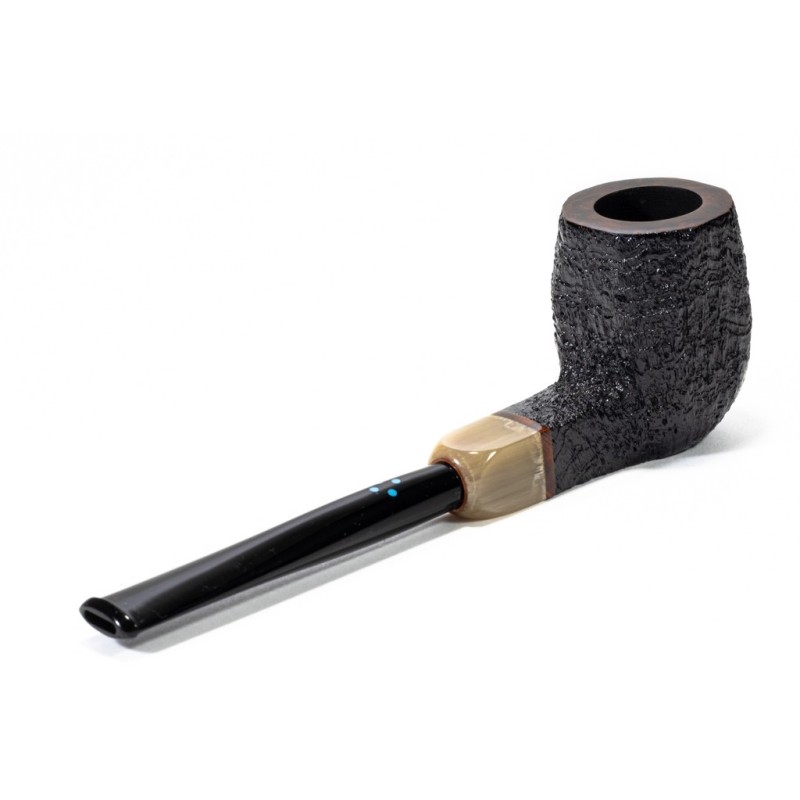 Sasieni 4 Dot Dark Ruff Sandblasted, Color: Black, Smooth Rim, True in Horn, Grafting to Flock, Sasieni Pipe Bag included, without filter.