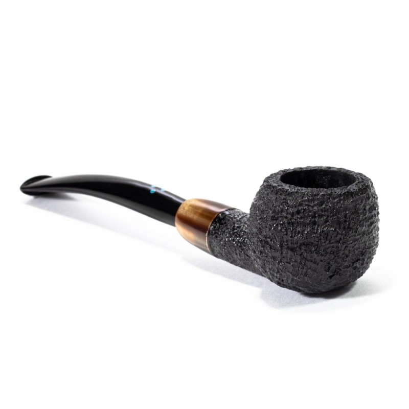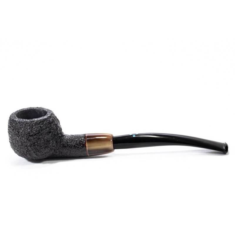 Sasieni 4 Dot Dark Ruff Sandblasted, Color: Black, Shank and stem slightly arched, True in Horn, Grafting to Flock, Sasieni Pipe Bag included, without filter.