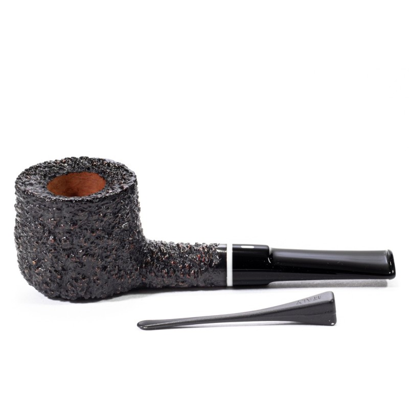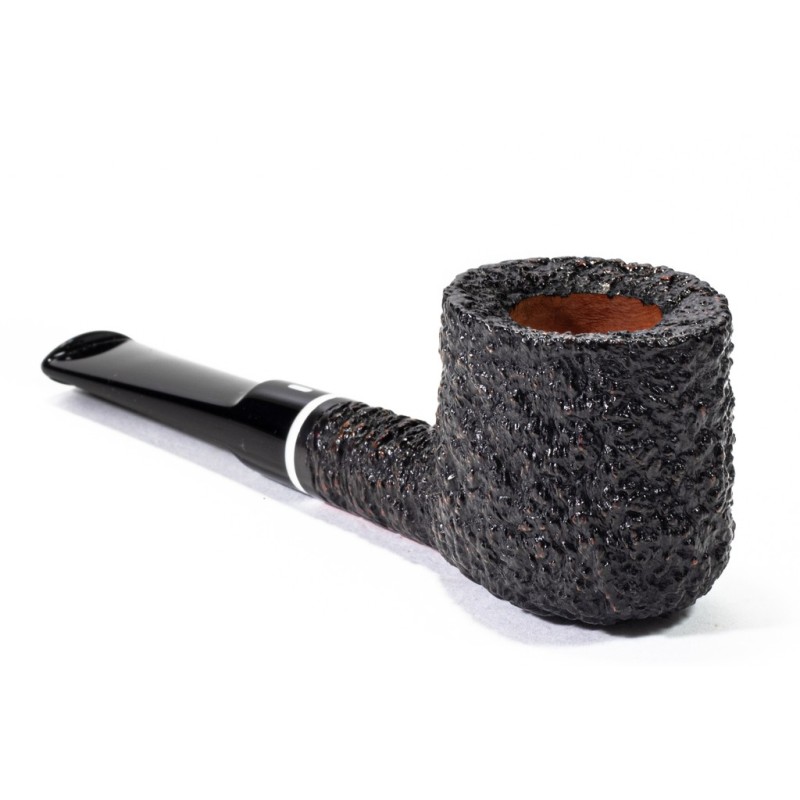 Castello Sea Rock Briar KKKK Rusticated, Model 44, Color: Dark Brown, Oval Bowl, punching Kino, saddle stem, without filter, Box with original pipe bag and warranty certificate, Made in Cantù, Italy.