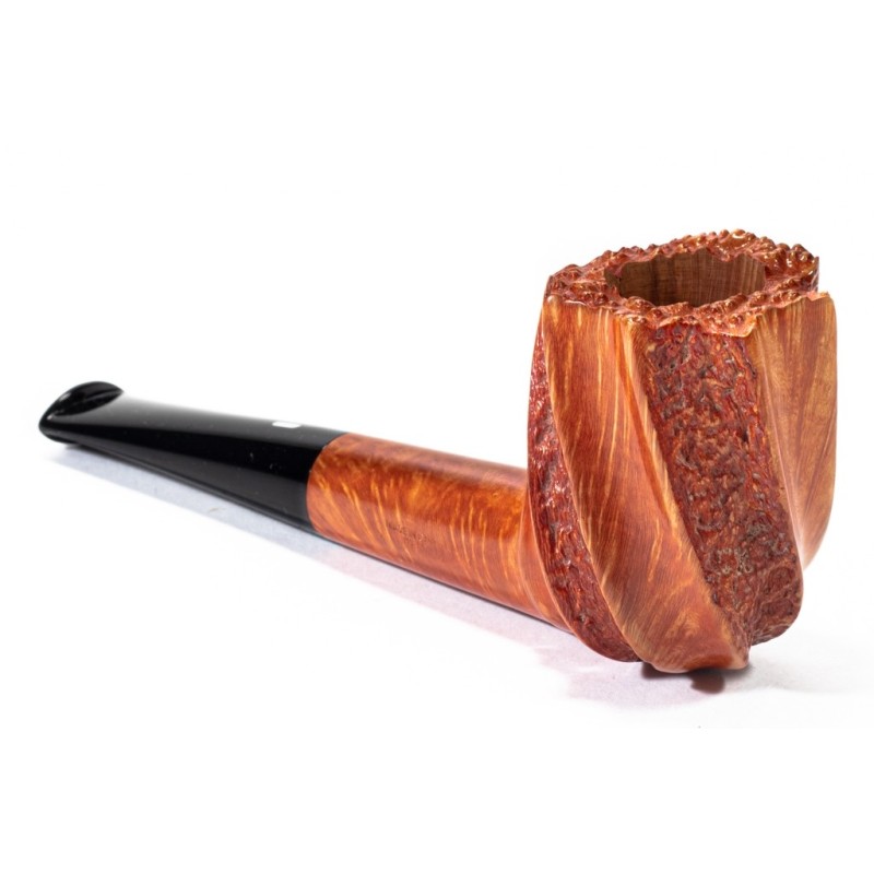 Castello "Castello" KKKK Pi Greco Smooth, Color: Brown, Rusticated Rim, Elaborated Semi-Rusticated Chamber, Oval Shank, Punching π (Pi Greco), Castello Logo and Kino, without filter, bag and original box with warranty certificate, Made in Cantù, Italy.