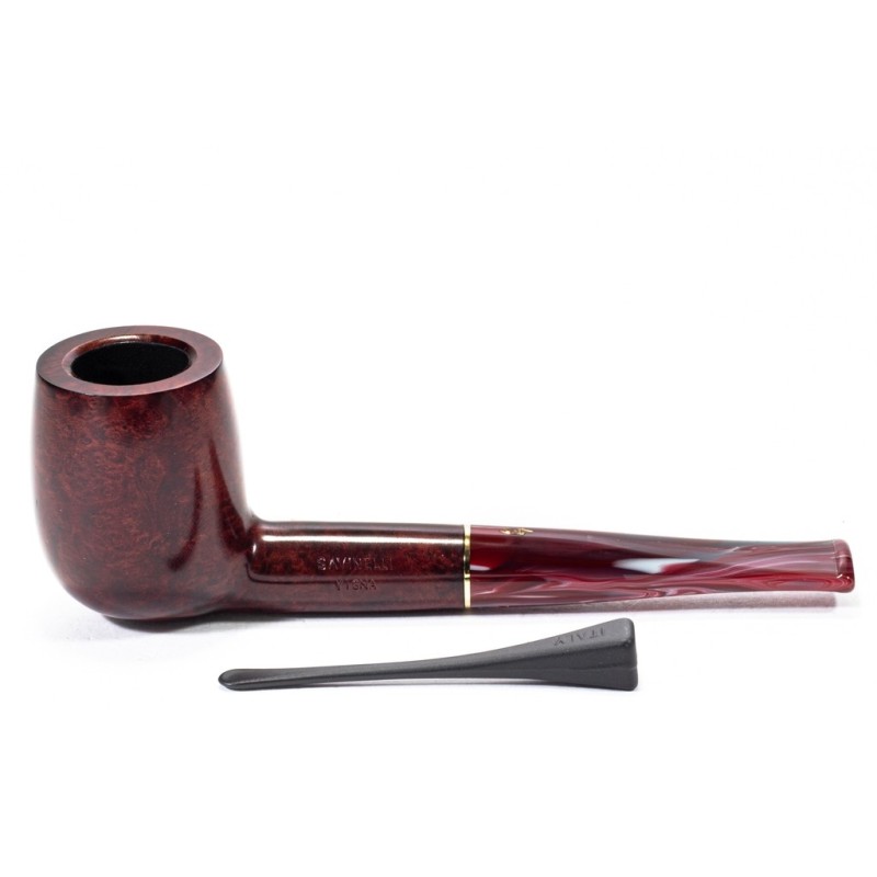 Savinelli Vigna Smooth, Model 128, Color: Bordeaux, Aluminum golden True, filter 6mm with adapter, bag and original box, Made in Italy.