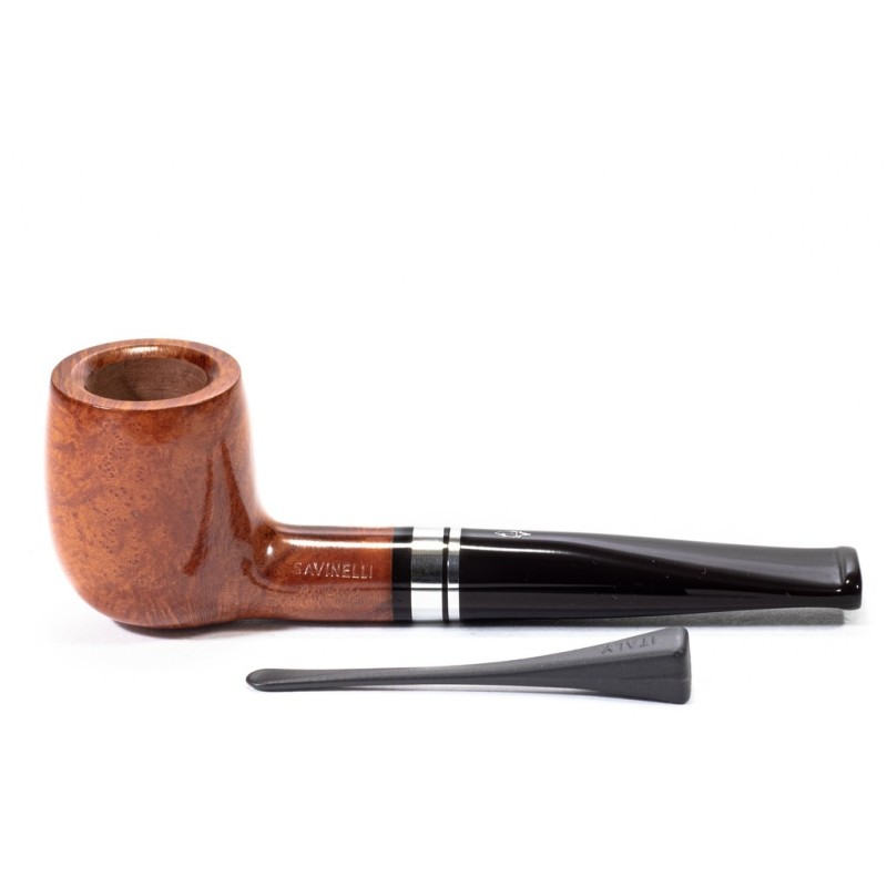 Savinelli Minerva Smooth, Model 106, Color: Light Brown, insert on stem and True in Nickel, filter 6mm with adapter, bag and original box, Made in Italy.