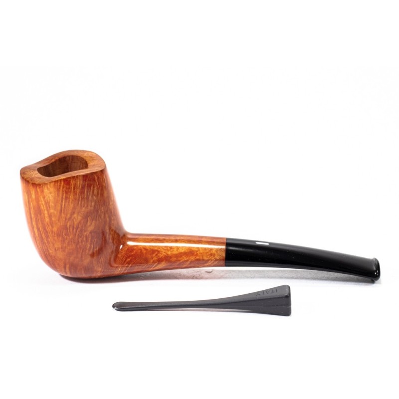 Castello "Castello" KKKK smooth, Model 35, Stand Up, Color: Light Brown, Punching Castello Logo and Kino, without filter, Box with original pipe bag and warranty certificate, Made in Cantù, Italy.