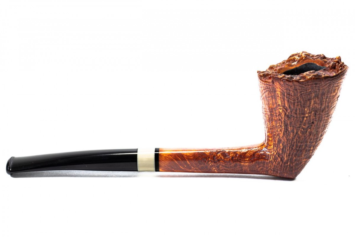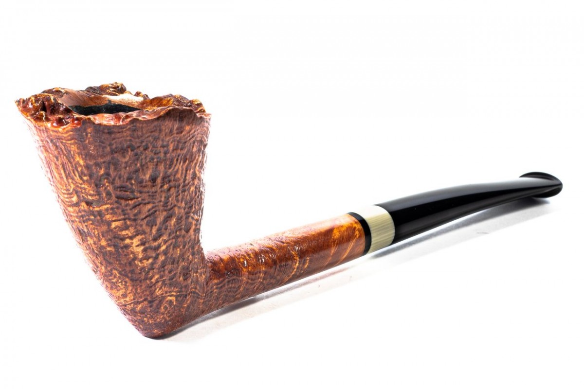 Nuttens Hand Made A Sandblasted, Color: Light Brown, Rusticated Rim, insert on stem in Bacalite, without filter, Made in France.