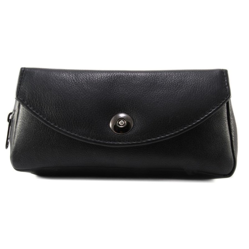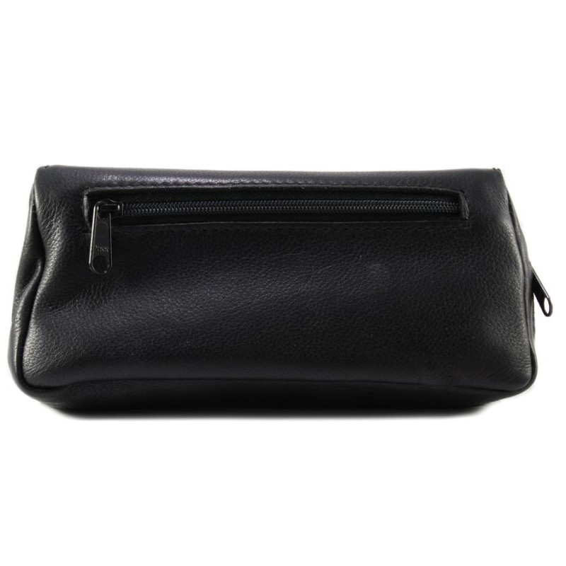 pipe bag in leather with magnet button for 1 pipe, 2 zip, 1 internal pocket, Color: Black.
