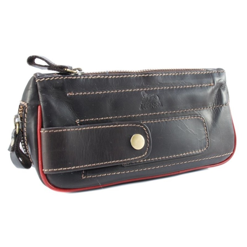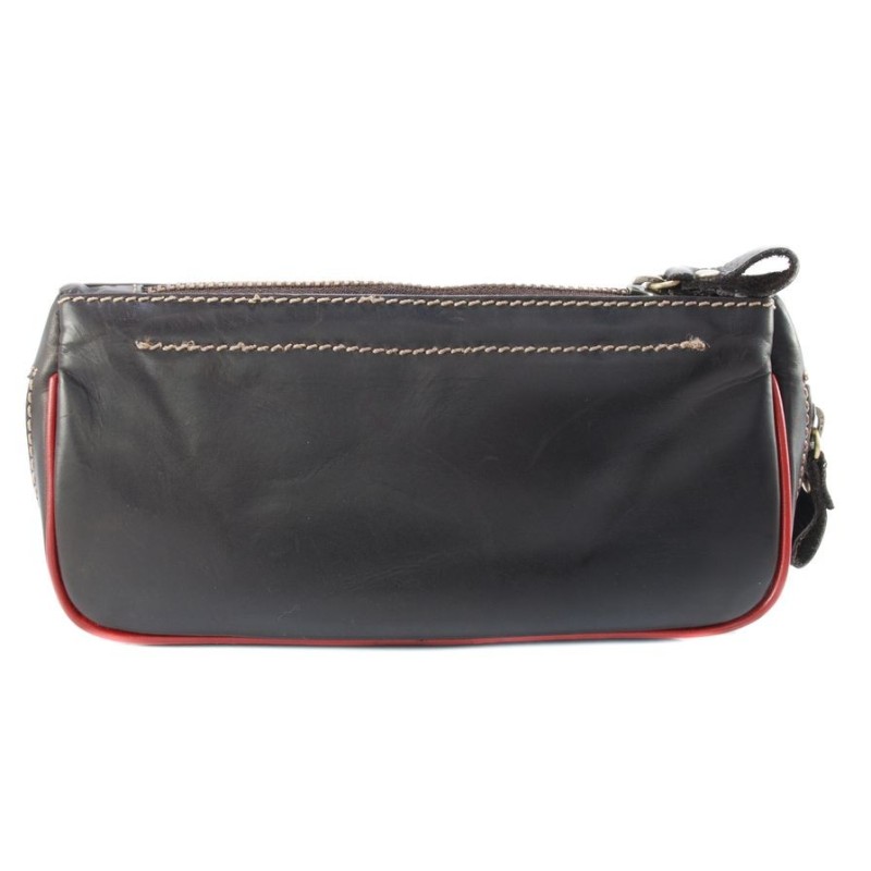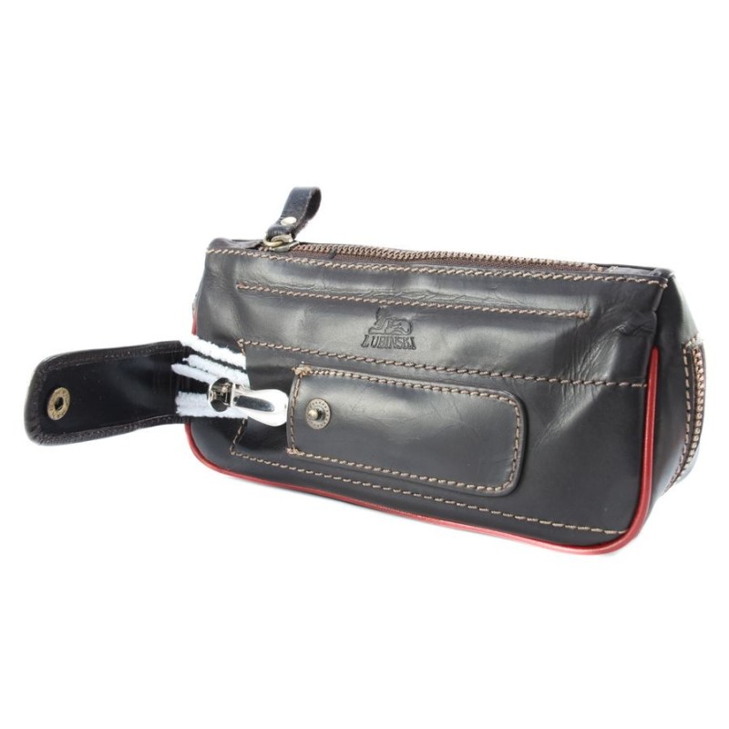 pipe bag in leather for 1 pipe. with tamper holder and pipe cleaners holder, 2 zip, Color: Brown - Red.