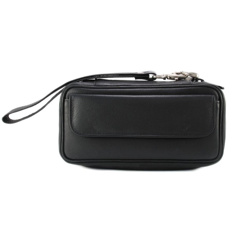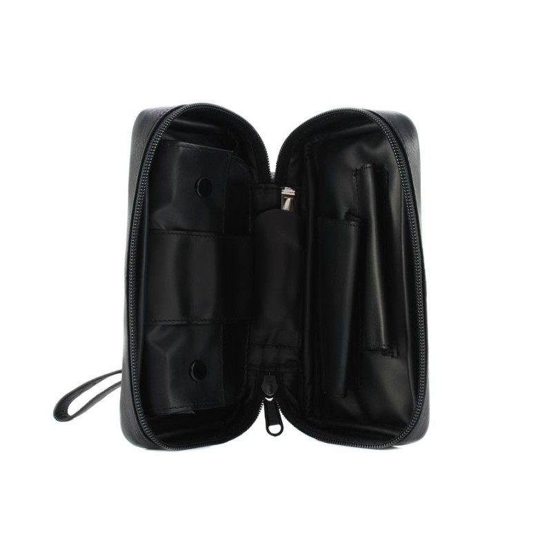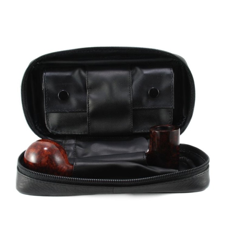 Pipe Bag in leather for 2 pipes, 1 external pocket, 1 zip, 1 tobacco holder extractable, 1 pocket for tobacco stopper color: Black Codice: I723-N