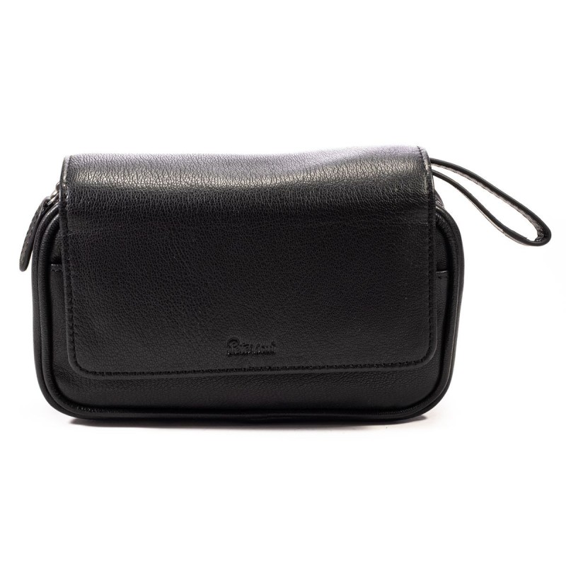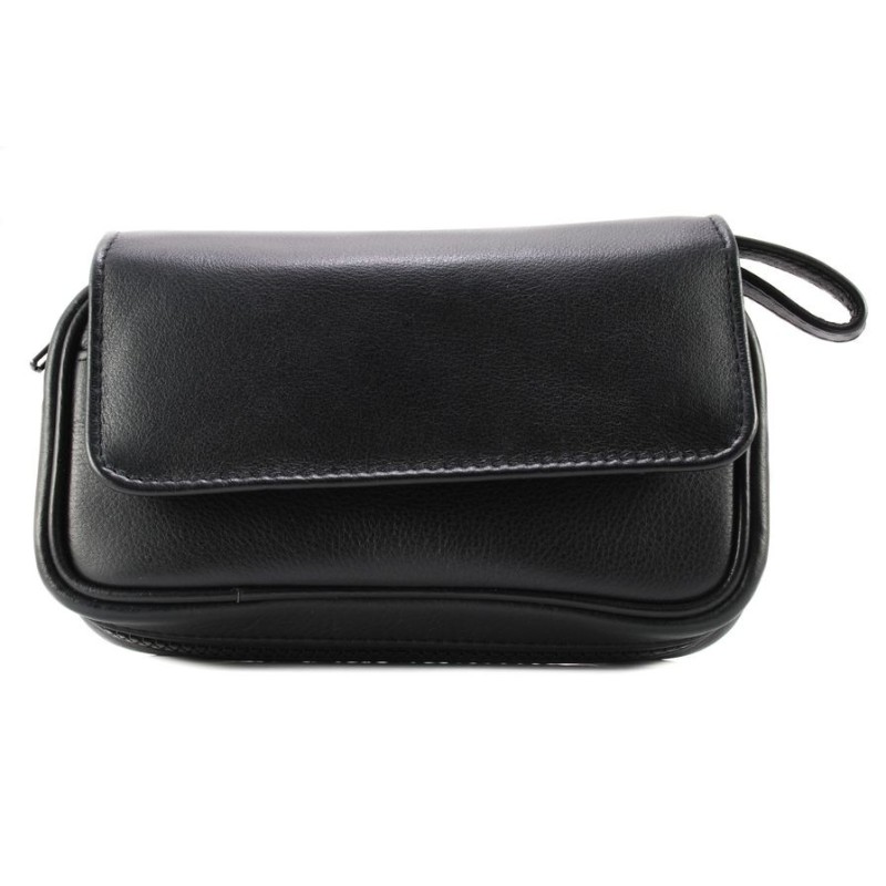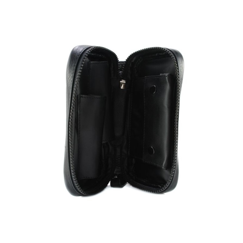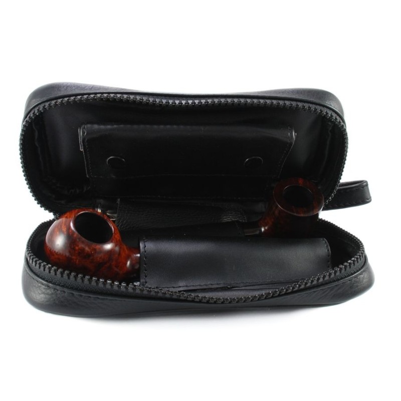Pipe Bag for 2 pipes in Nappa leather, 1 zip, 2 external pockets, 1 extractable tobacco holder, 1 tobacco stopper holder color: Black.