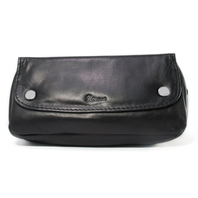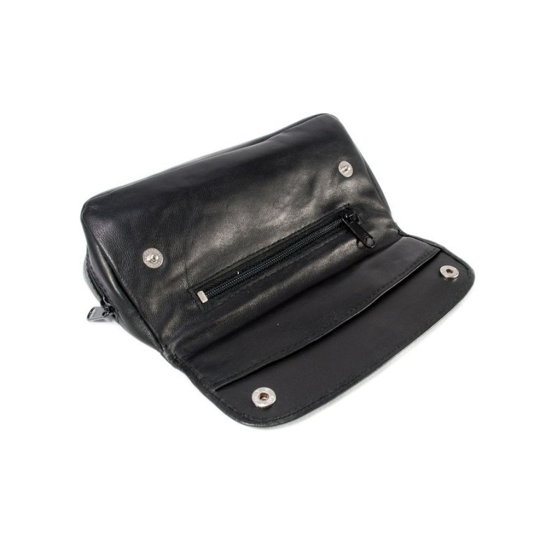 Pipe Bag in Nappa leather with buttons for 1 pipe, 1 tobacco holder pocket, 2 zip, color: Black.