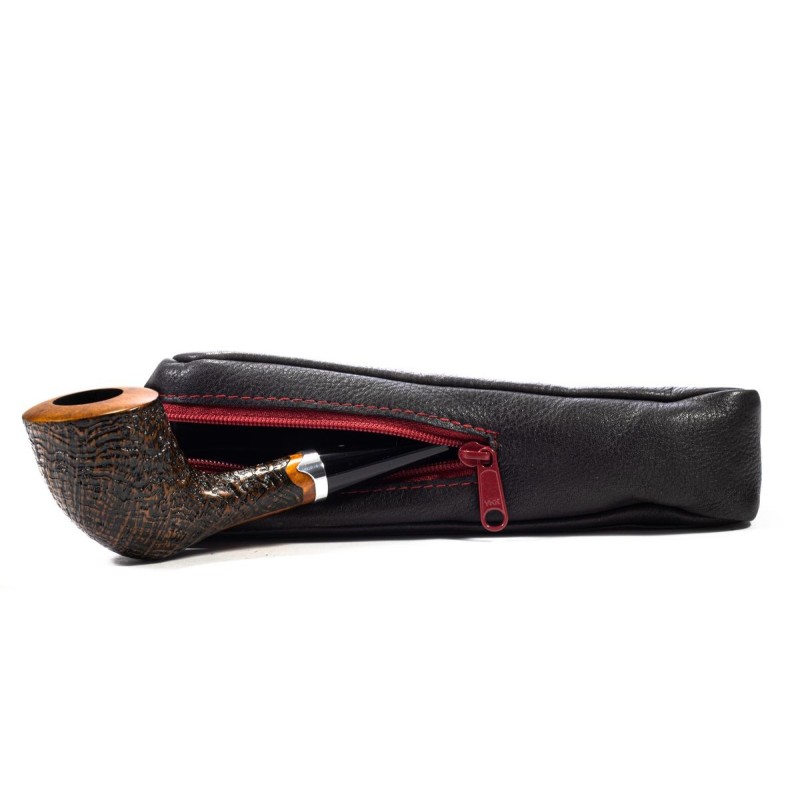 Pipe bag in leather for 1 pipe, with pipe cleaners holder, 2 zip, 1 external pocket. color: Blue & Red.