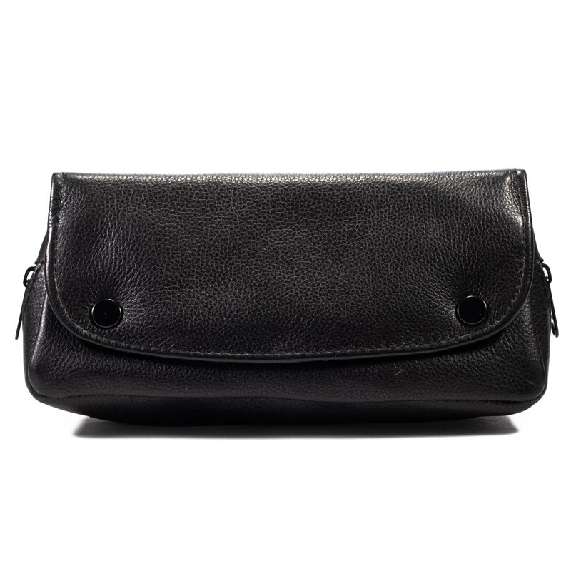 pipe bag in leather With buttons for 1 pipe, 2 zip and 1 pocket for tobacco, Color: Black.