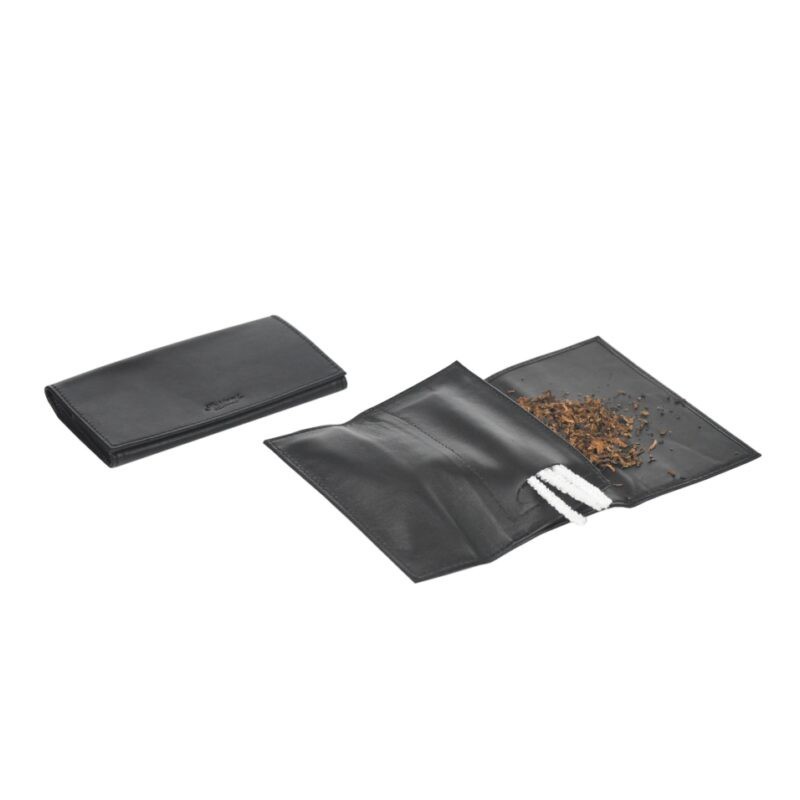 Sasieni Tobacco holder roll-up in Nappa leather with pocket for tobacco and pocket for accessories, Color: Black.