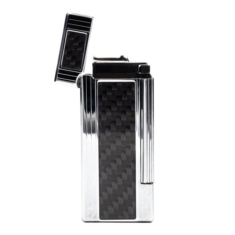 Accendino per pipa Lubinski Ostuni a Pietrina, fiamma dolce a 45°, Cromo e Fibra di Carbonio.