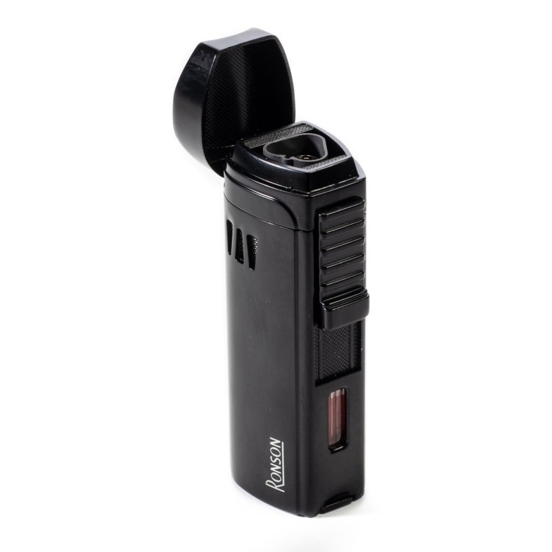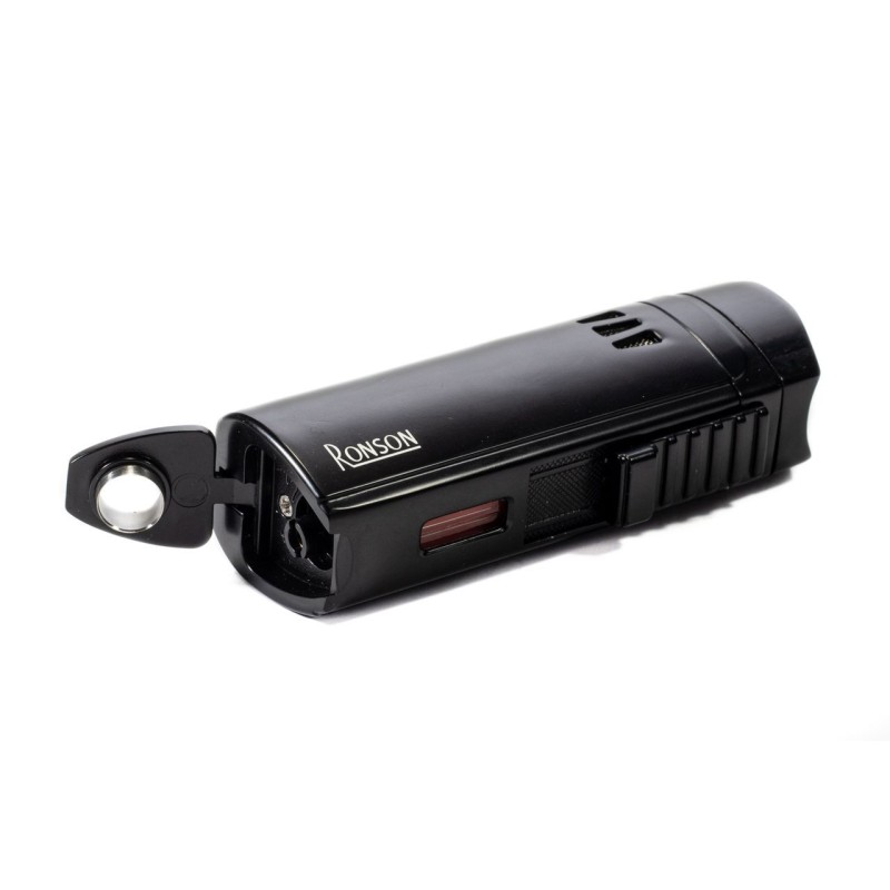 Accendino Jet Flame Ronson Mistral, Triple Flame, Colore: Nero, pratico Cappuccio curvo poggiasigari e Bucasigari nella parte inferiore dell'accendino, scatola originale con certificato di garanzia.