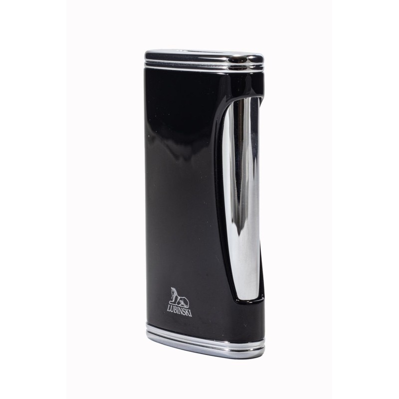 Accendino Lubinski Bellagio Triplo Flat Flame Piezoelettrico con Bucasigari, Colore: Nero.