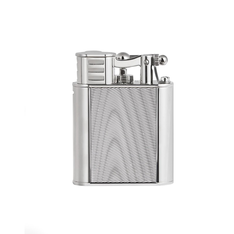 Accendino Dunhill The White Spot Unique Turbo Moirè Piezoelettrico, realizzato in Ottone e Placcato in Palladio con incisione trama seta Moirè, Jet Flame, incisione logo Dunhill alla base dell'accendino, Colore: Cromo.