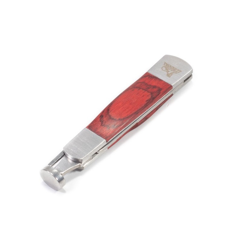 Pigino premi tabacco e raschiatore per il fornello con paletta/punta, Materiale: Acciaio Inox con rivestimento in Legno Multistrato, Colore: Rosso.