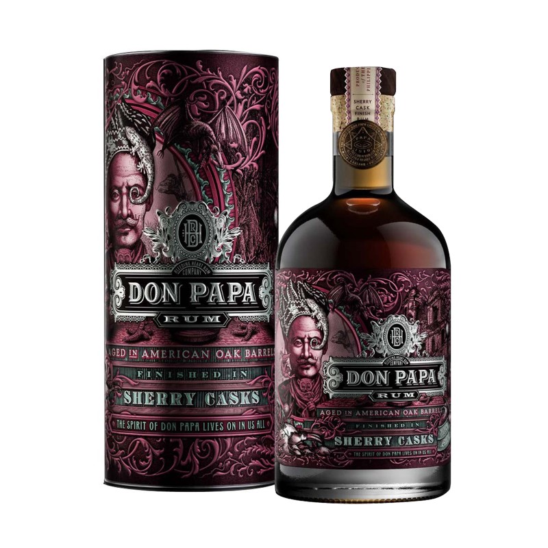 Don Papa Sherry Cask Finish è un rum premium in edizione limitata distillato sull'isola filippina di Negros. Le canne da zucchero coltivate sul monte Kanlaon beneficiano del clima eccezionale e del suolo vulcanico. Dopo che la canna da zucchero è stata raccolta, viene lavorata dai mulini locali e la melassa risultante, chiamata localmente "oro nero", viene consegnata alla distilleria. Si tratta di un piccolo lotto di rum che viene invecchiato in botti di rovere americano ex bourbon prima di essere maturato in tre diversi tipi di botti di sherry Fino, Cream e Pedro Ximenez.
