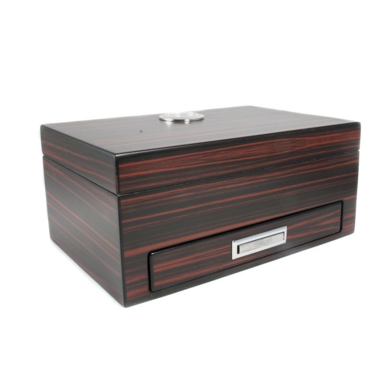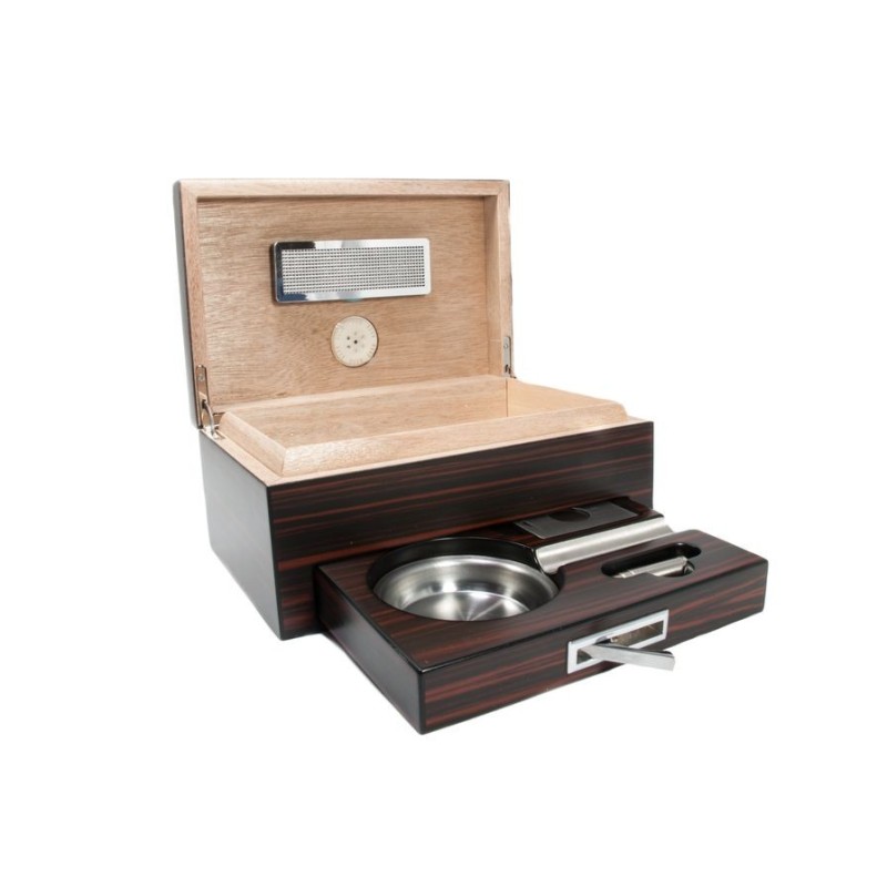 Scatola Humidor per sigari in Ebano Opaco, con cassetto estraibile contenente posacenere, taglia sigari e bucasigari. B01MSINY4V