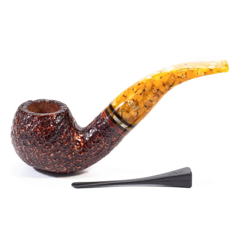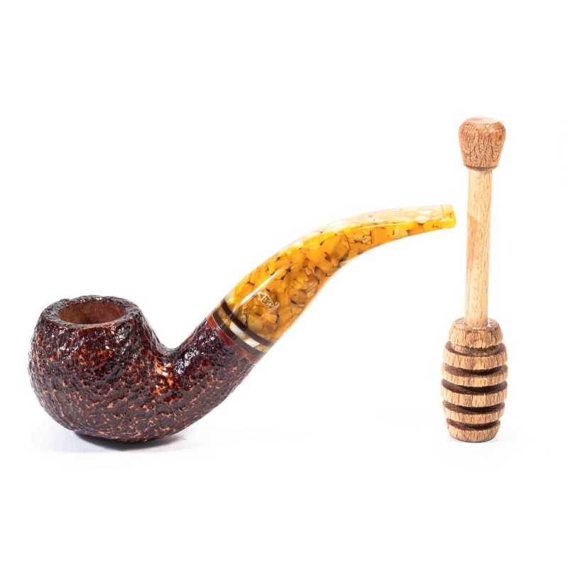 Savinelli Miele Rusticata, Modello 642, Colore: Marrone Scuro, Pipa corredata di Pigino Curapipe in Legno a forma di Coglimiele, filtro 6mm con riduttore, sacchetto e scatola originale, Made in Italy.